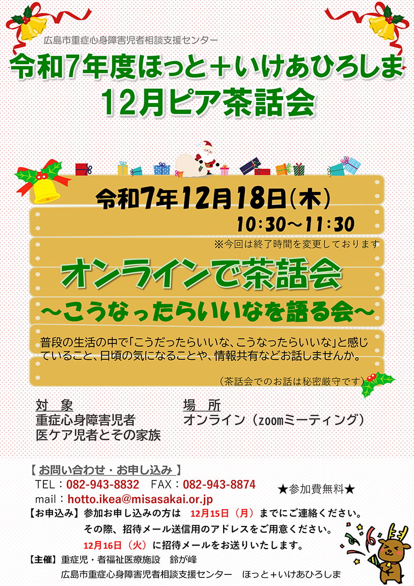 令和7年度ほっと+いけあひろしま 12月ピア茶話会