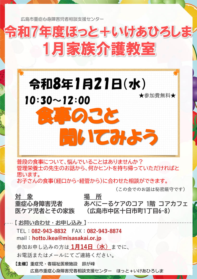 令和7年度ほっと+いけあひろしま 1月家族介護教室
